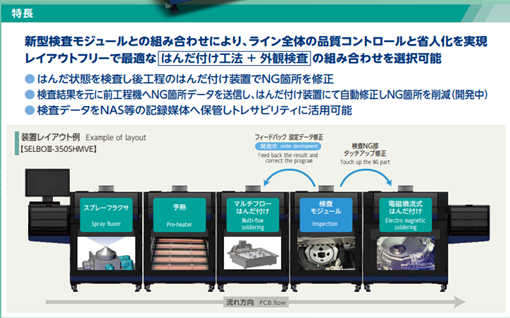 弊社のセレクティブはんだ槽と検査を融合し、検査後のNG箇所を自動修正して不良基板を出さない